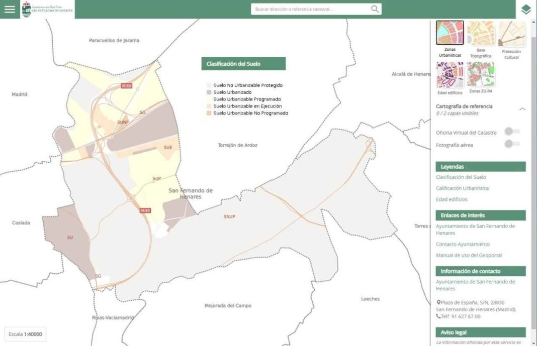 La Concejalía de Modernización de San Fernando de Henares, dirigida por David Moreno, pone en marcha el ‘GeoPortal’, un nuevo y práctico instrumento online con el que los vecinos podrán conocer cualquier tipo de dato geográfico y/o urbanístico de la ciudad.