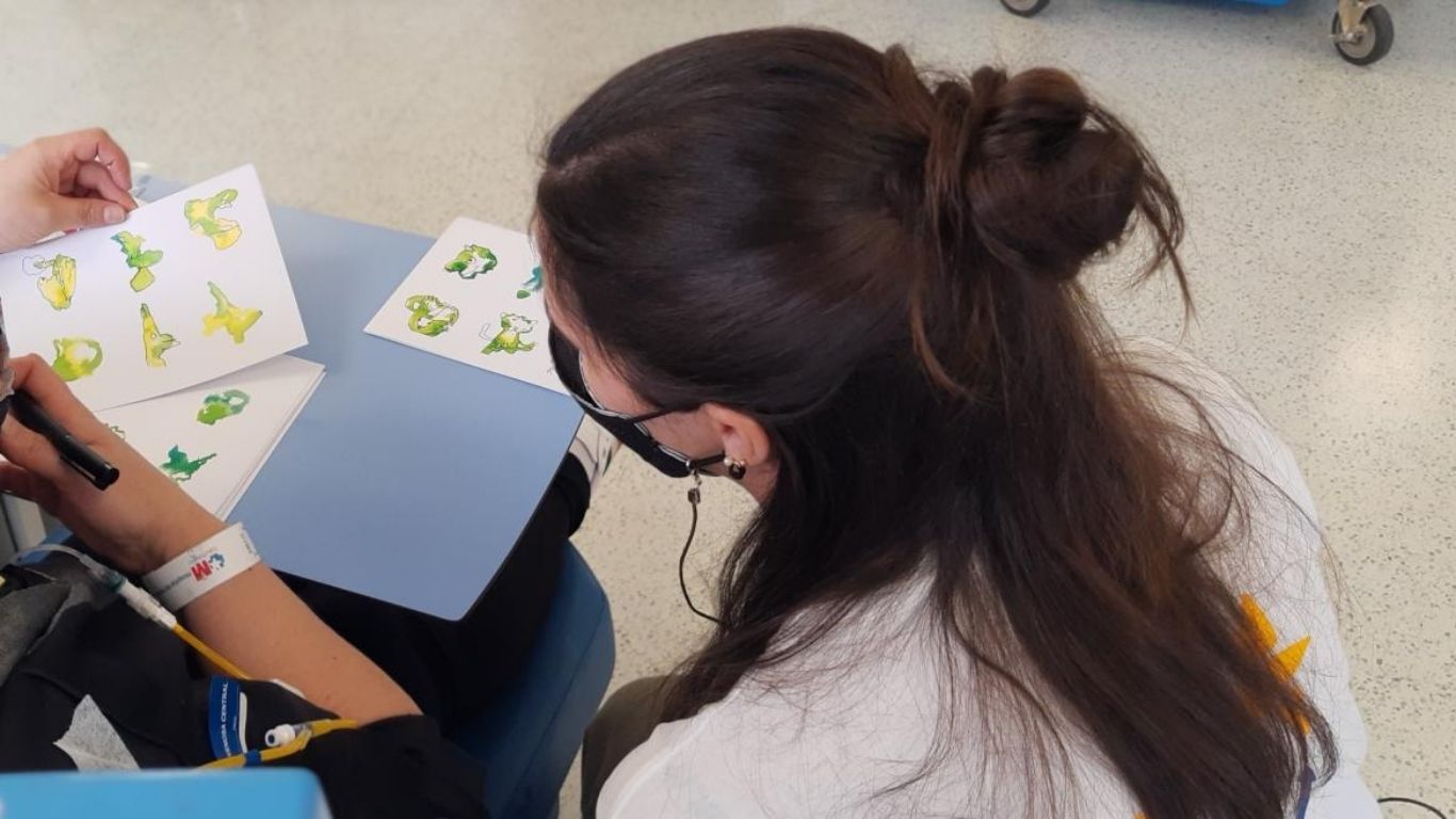Las sesiones se realizan cada quince días en el Hospital de Día Oncohematológico y se enmarcan en el programa desarrollado junto a la Fundación Diversión Solidaria, que el hospital viene realizando desde 2022, con disciplinas como intervención asistida con animales, musicoterapia, improvisación, arteterapia y oratoria, siempre adaptadas al estado clínico y preferencias de cada paciente.