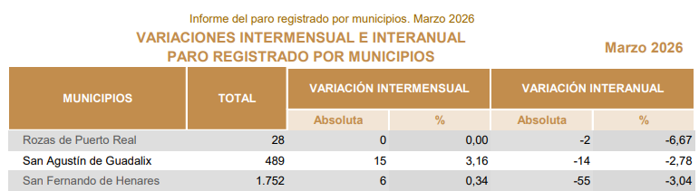 En términos interanuales, la cifra refleja una evolución positiva, con 55 desempleados menos que en marzo de 2025, lo que equivale a una caída del 3,04 % en los últimos doce meses.