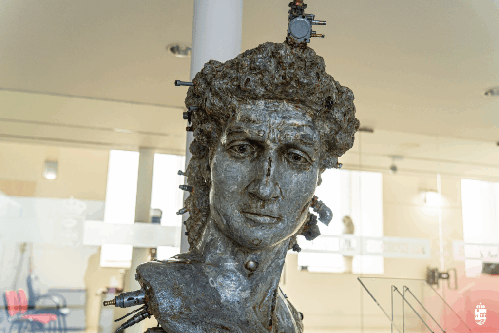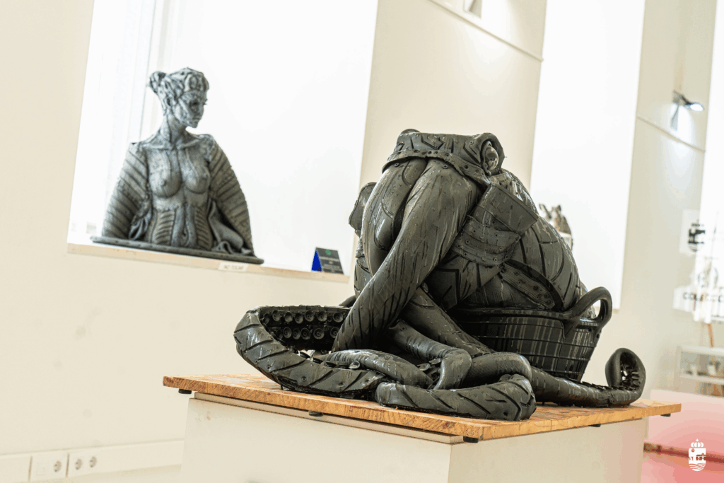 La exposición reúne una quincena de esculturas realizadas en los últimos años, donde se refleja la evolución creativa de Cañas y su apuesta por el arte a partir de materiales reciclados.