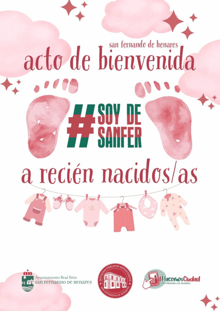 El Ayuntamiento de San Fernando de Henares ha abierto el plazo de inscripción para el Acto Institucional de Bienvenida dirigido a todos los bebés nacidos en el municipio durante el año 2025. El evento se celebrará el 11 de enero de 2026 en el Salón de Plenos de la Casa Consistorial (plaza de España s/n, primera planta).