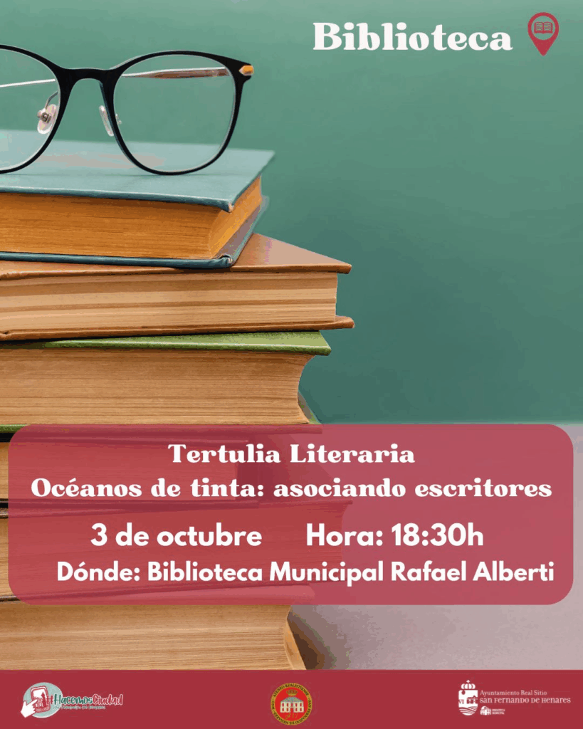 Este viernes, 3 de octubre, la Biblioteca Municipal Rafael Alberti de San Fernando de Henares abrirá sus puertas a una nueva cita cultural. Se trata de la tertulia literaria “Océanos de tinta: asociando escritores”, organizada por la Asociación Ateneo RealSitiense, que reunirá a autores y amantes de la literatura en un espacio de encuentro y reflexión.