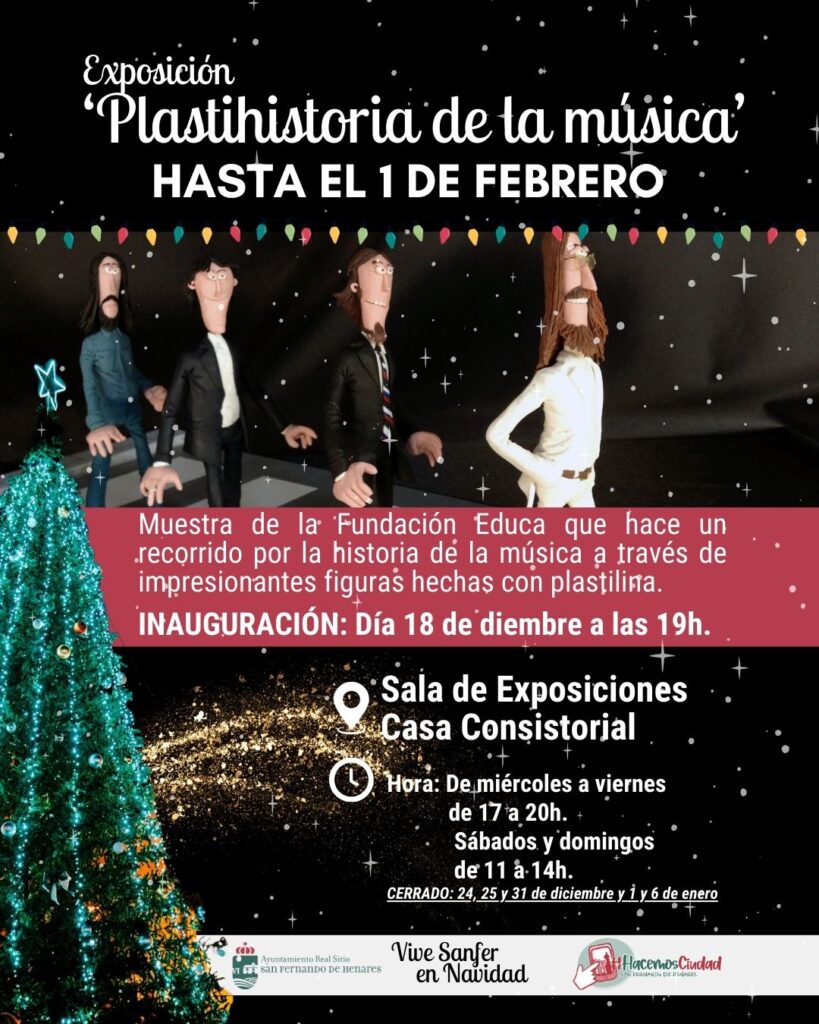 La programación navideña de San Fernando de Henares incorpora una propuesta cultural dirigida a todos los públicos con la llegada de la exposición Plastihistoria de la música, que podrá visitarse en la sala de exposiciones del Ayuntamiento desde este jueves, 18 de diciembre, y hasta el próximo 1 de febrero.