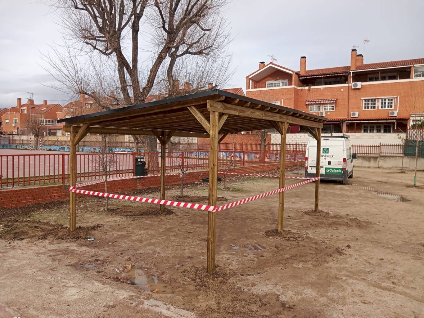 Entre las principales intervenciones realizadas destaca la instalación de pérgolas y toldos en los espacios exteriores de los centros, una medida orientada a mejorar el sombreado y el confort técnico del alumnado y del personal docente. Estas actuaciones se complementan con la dotación de sistemas de climatización, tanto portátiles como fijos, en aulas y en otros espacios de uso común.